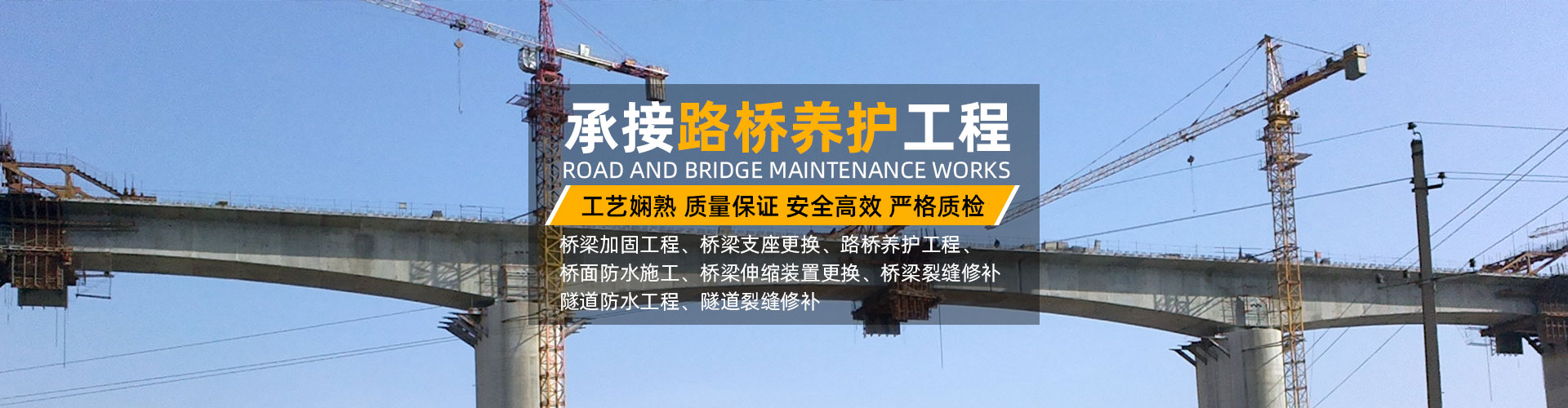 承接路橋養(yǎng)護(hù)工程、橋梁加固工程、支座更換、裂縫修補(bǔ)、伸縮縫更換、橋梁頂升工程